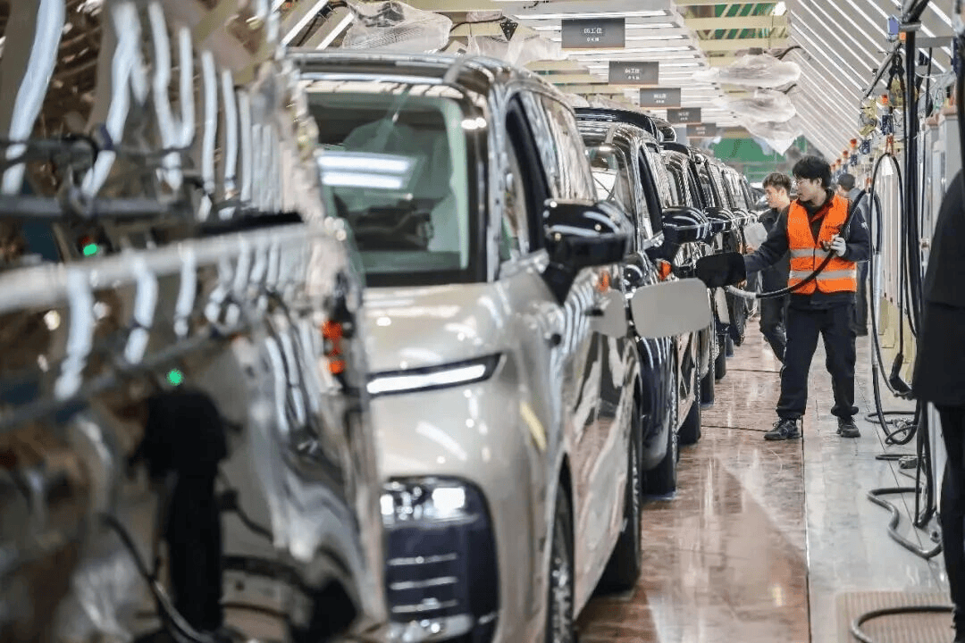 2026年2月3日,正在浙江义乌市吉利领克汽车义乌工场的总卸车间内,手艺工人正正在从动化出产线上拆卸新车。金思成摄。